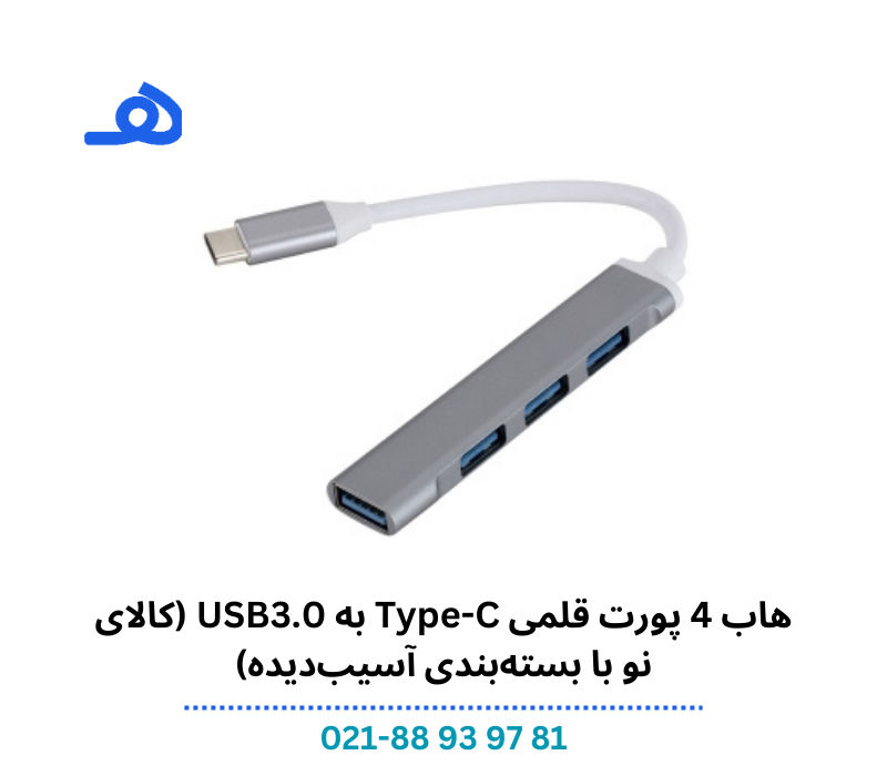 هاب 4 پورت قلمی Type-C به USB3.0 (کالای نو با بستهبندی آسیبدیده)
